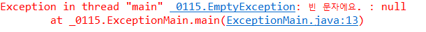 문자열이 비어있을 때 Exception처리를 하는 코드를 작성해보았습니다.