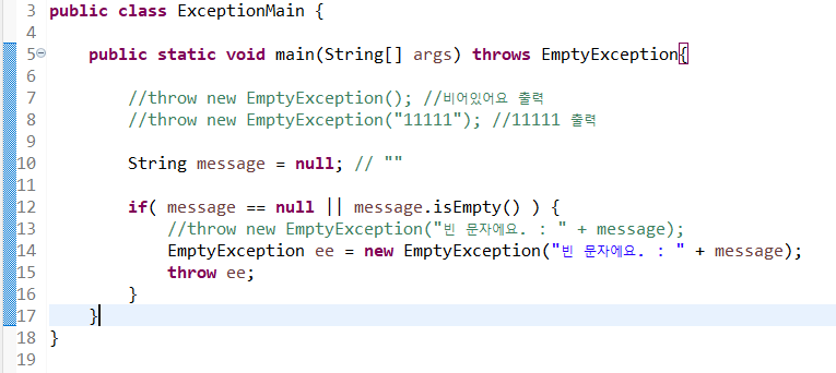 //throw new EmptyException("11111"); //11111 출력
