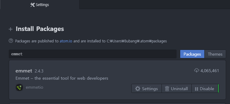 file -> settings emmet 검색 / install후 아래와 같은 화면 뜨면 완료