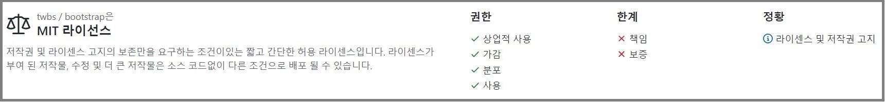 부트스트랩 전체 라이센스는 프로젝트 저장소 내 위치한 문서를 참조하세요. |