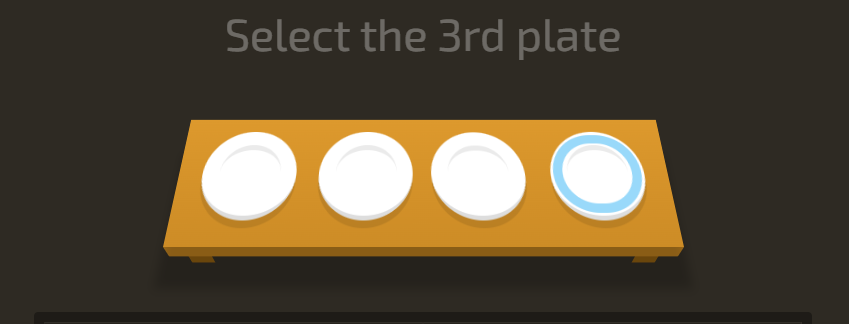 3번째 palte를 선택하는 문제로 답은 plate:nth-child(3)