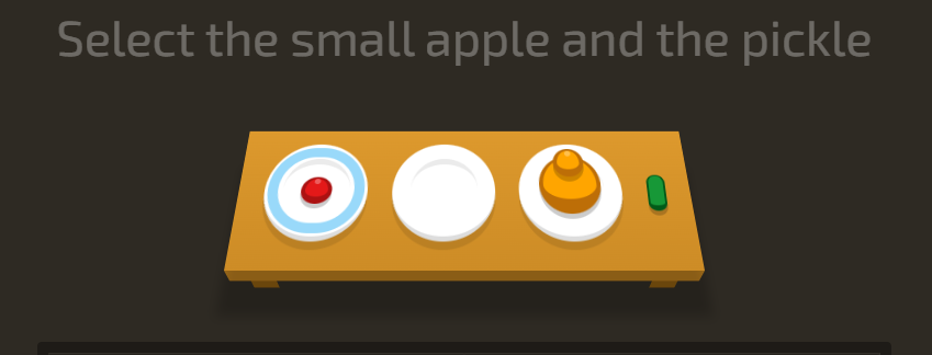 17. Select the small apple and the pickle