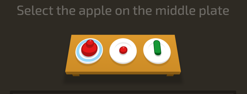 23. Select the apple on the middle plate