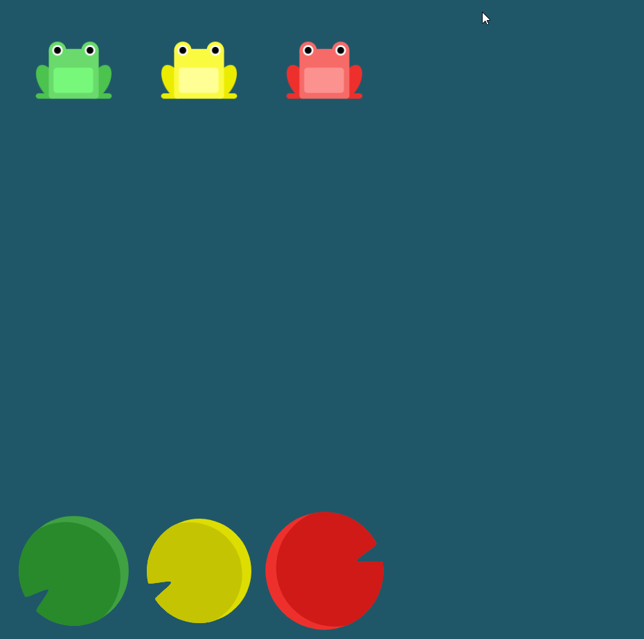 초록색과 노란색 개구리를 가운데로 보내줘야하는 문제로 justify-content:center를 이용해서 가운데 정렬을 합니다