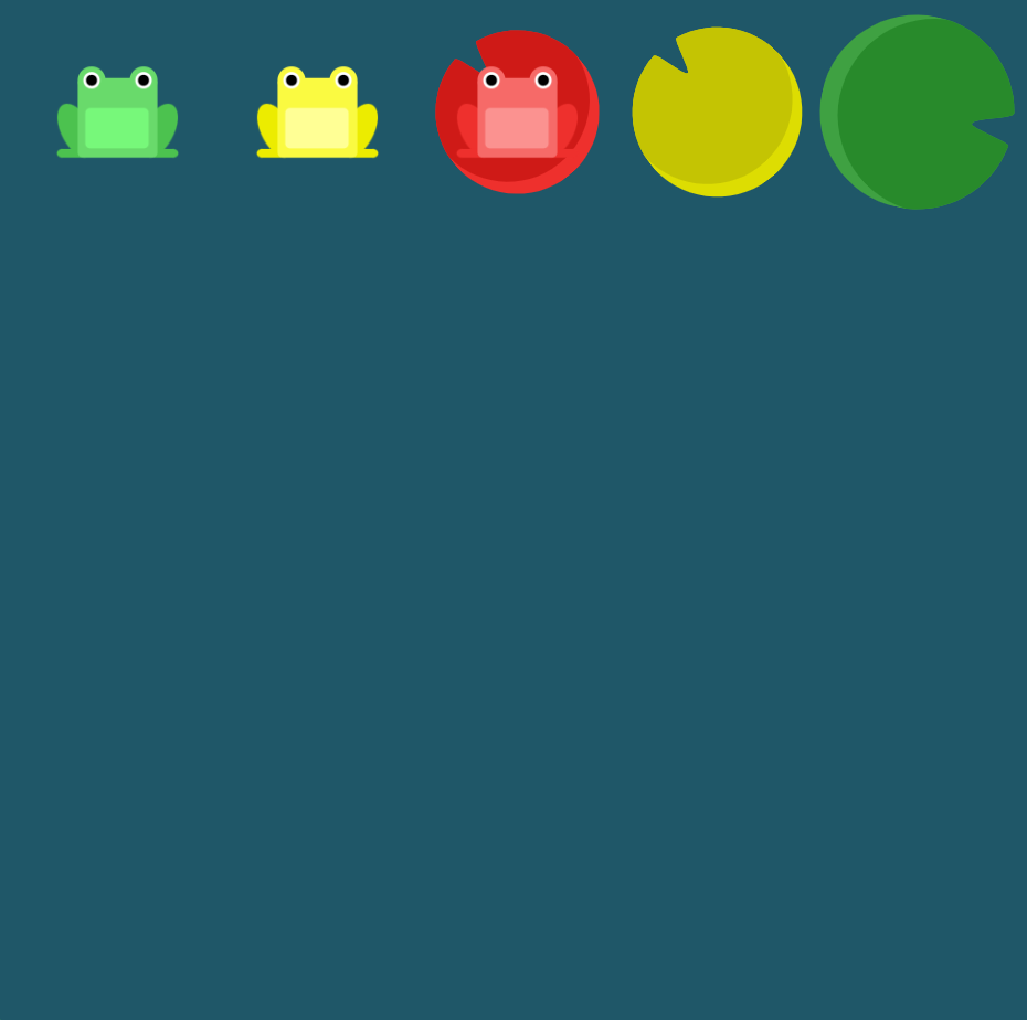 이 경우 정렬방향을 지정하는 속성인 flex-direction을 이용하고, 값을 행의 반대반향으로 이동시키는 row-reverse를 주면 개구리들이 맞는 각자의 수련잎으로 이동하게 됩니다.