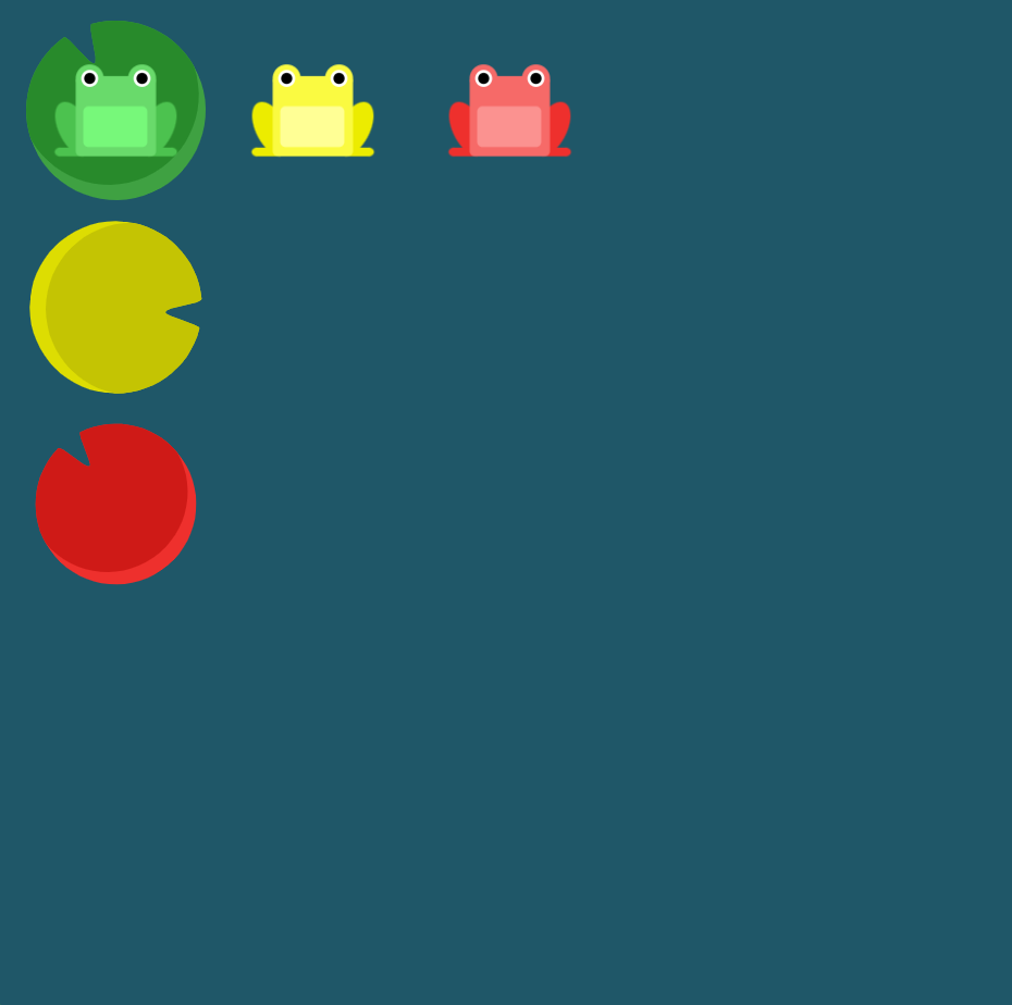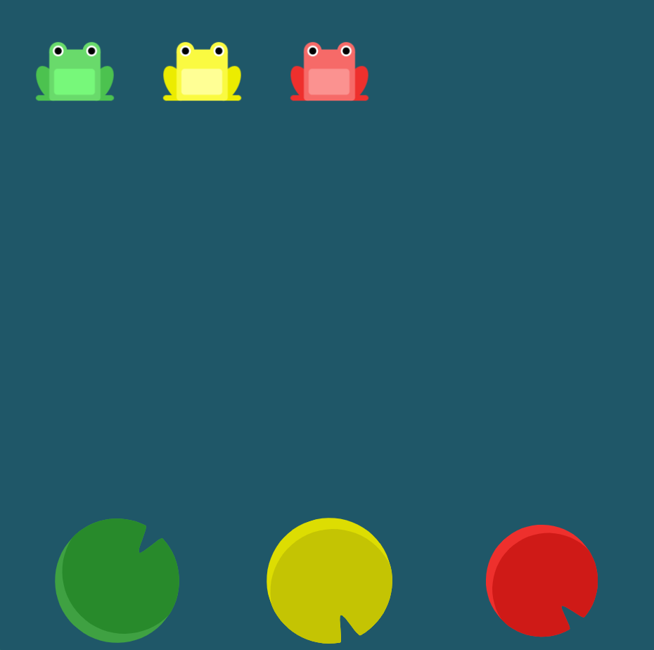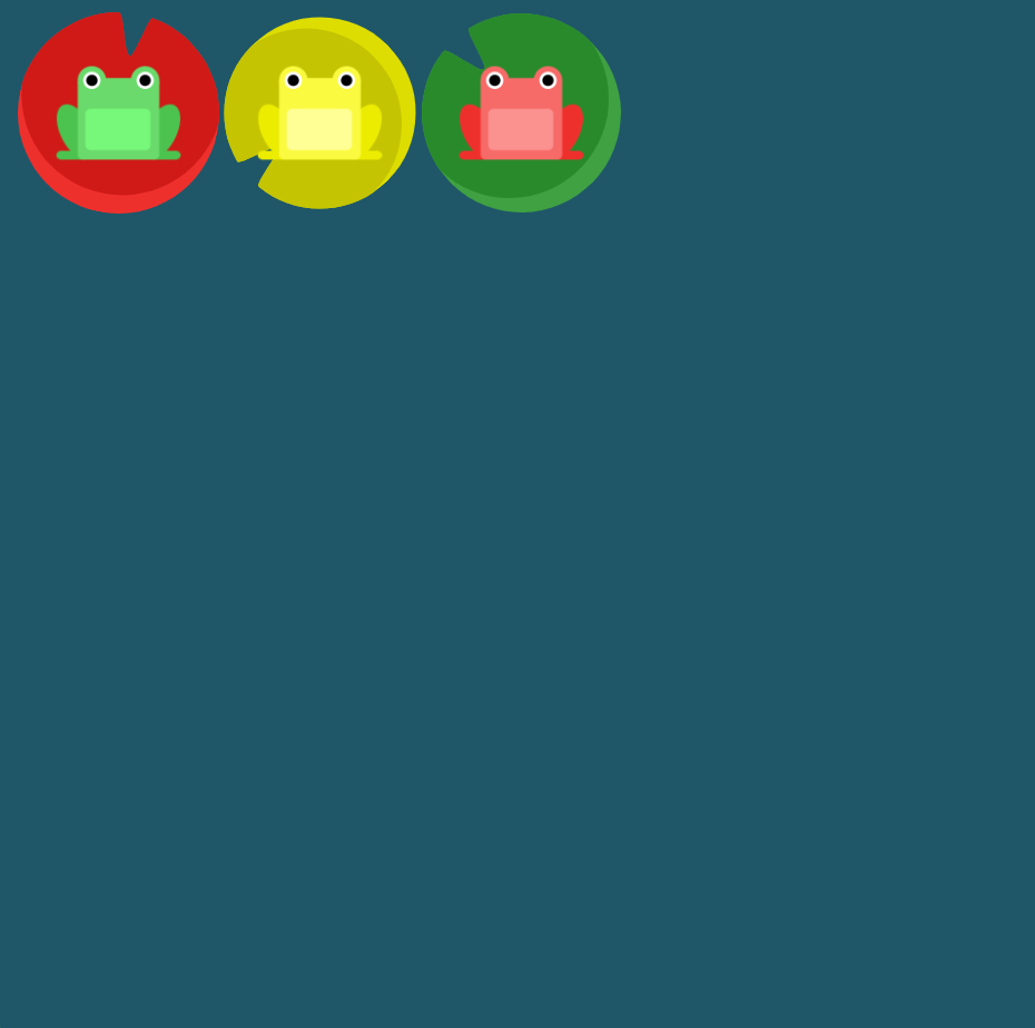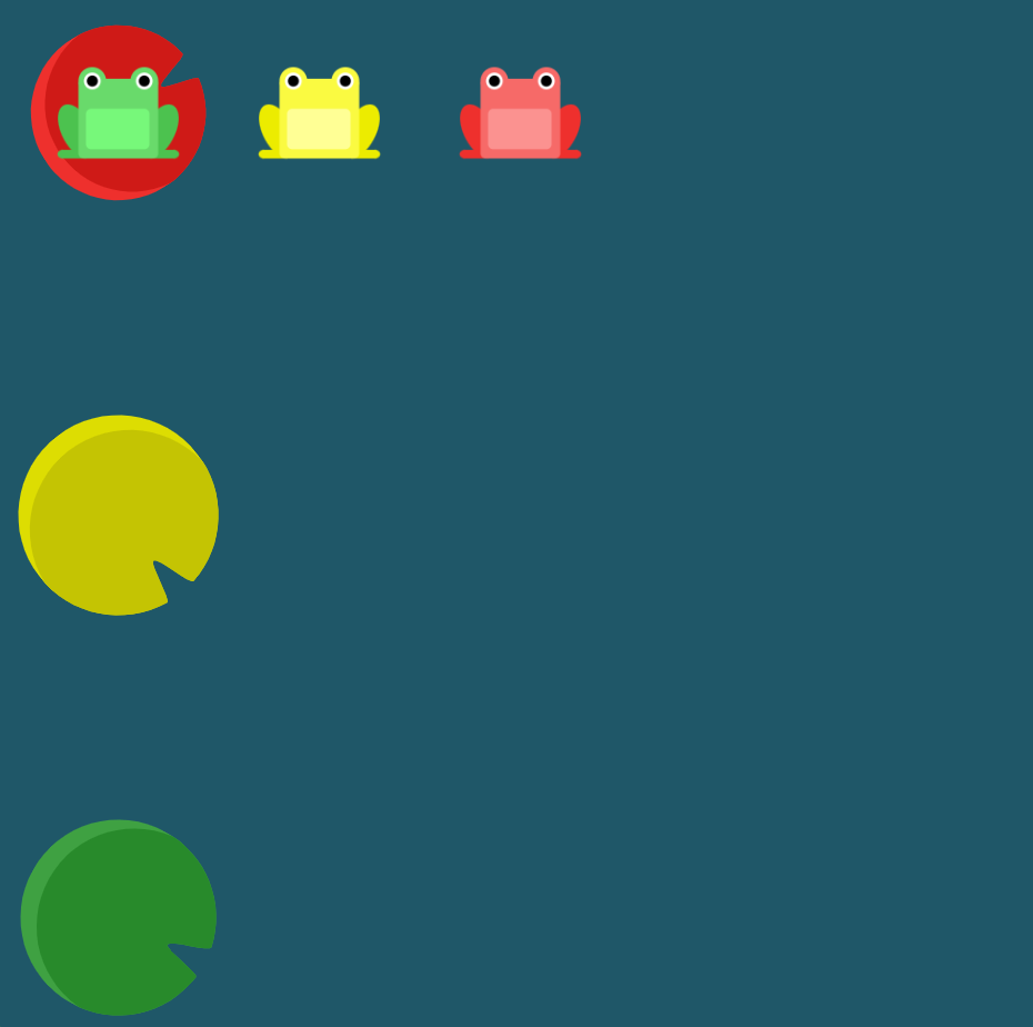 9번. flex-direction을 사용하여 개구리들이 자기 색깔과 같은 수련잎 위로 이동할 수 있도록 도와주세요.