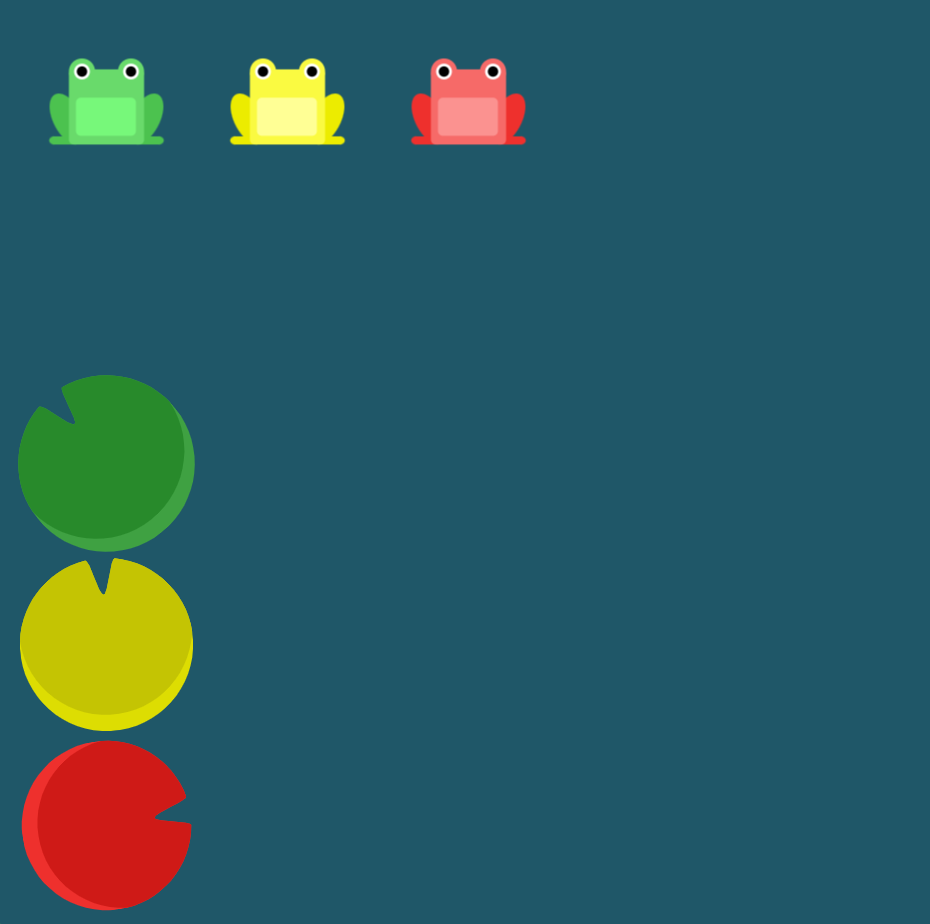 10번. 개구리들이 자기 색깔과 같은 수련잎 위로 이동할 수 있도록 도와주세요.